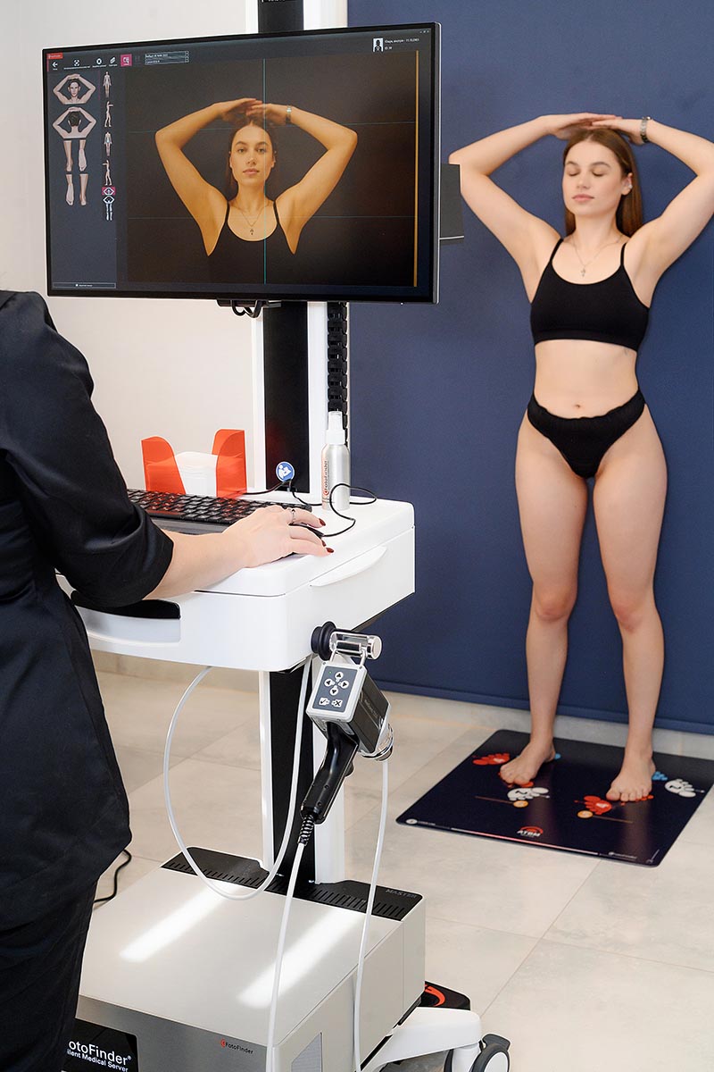 Дерматоскоп FotoFinder оснащений інноваційною оптикою, що забезпечує найвищу якість зображень. За допомогою цього пристрою можна дослідити як одне конкретне новоутворення, так і всі, що присутні на тілі, а також скласти «мапу родимок». Це дає можливість надалі контролювати їхню кількість і своєчасно виявляти структурні зміни.